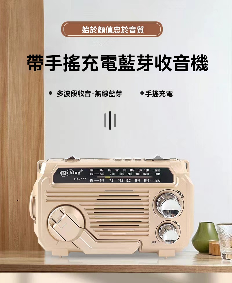 應急儲備!復古「手搖充電藍牙收音機」登場~太陽能/Type-C/手搖三充電,藍牙5.2無線暢聽!?