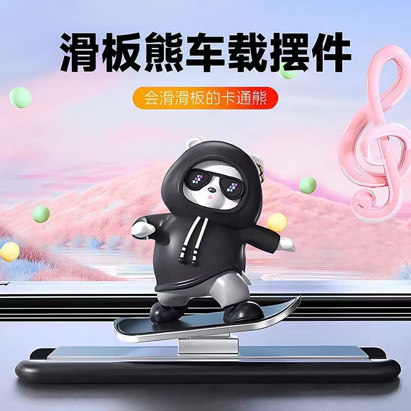 【會滑滑板的熊】車載療癒擺件・你的專屬副駕,隨車滑動超解壓!