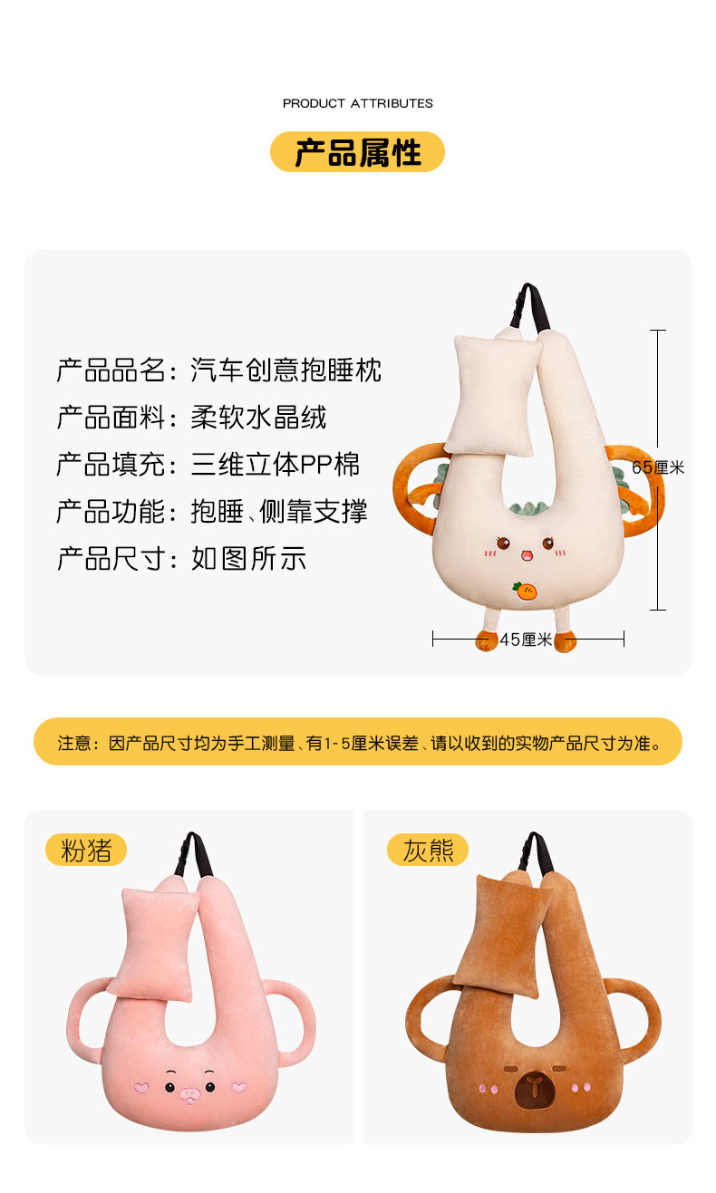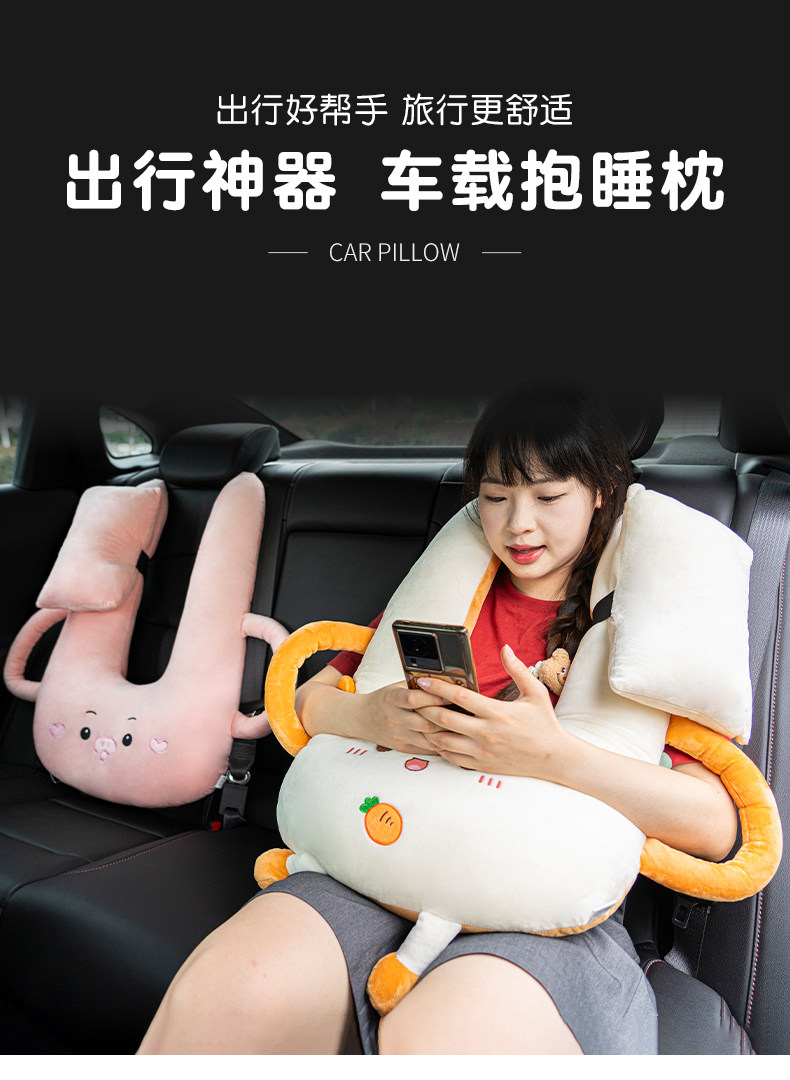 【車上休息神器】卡通抱睡枕・雙邊擋頭設計,長途旅行不再腰酸頸痛