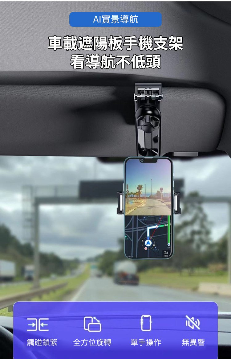 開車看導航,視線不用離開路面!「遮陽板手機支架」讓你安全又方便