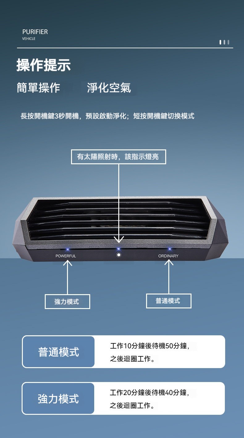 讓愛車空氣更清新!太陽能車載淨化器,隨車啟停好方便