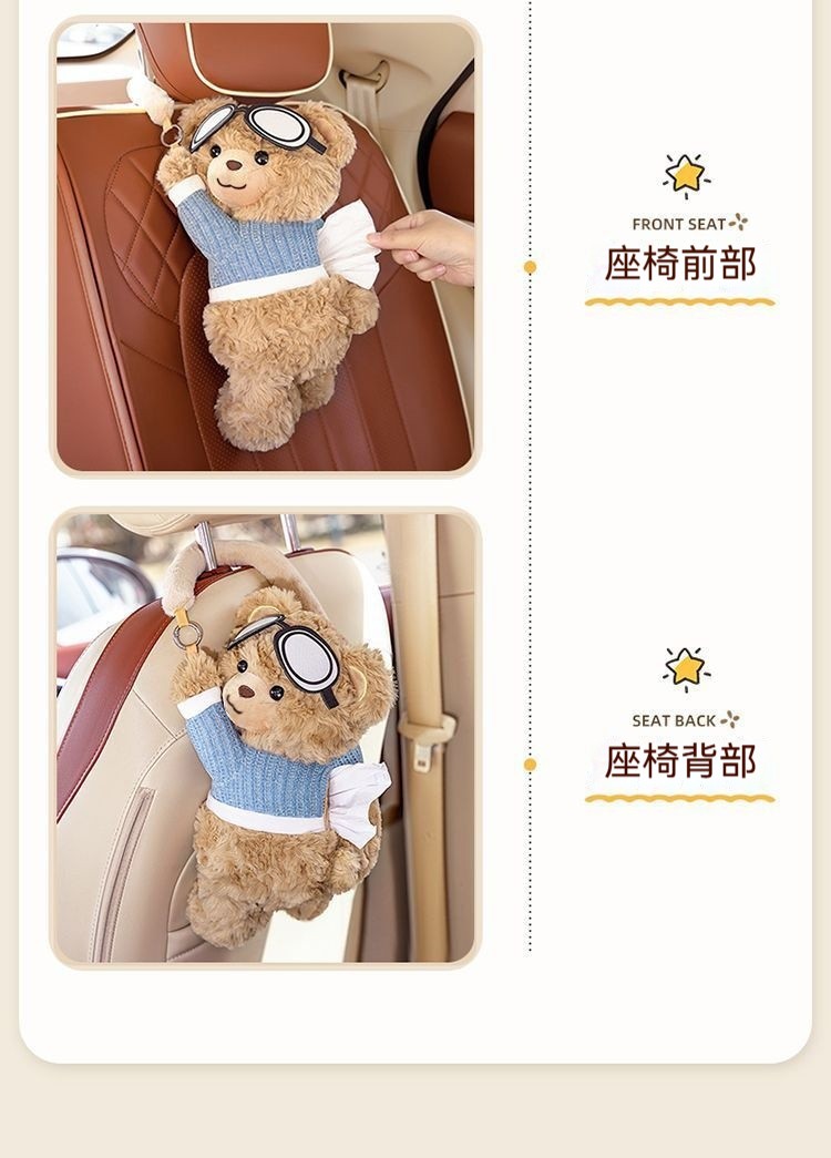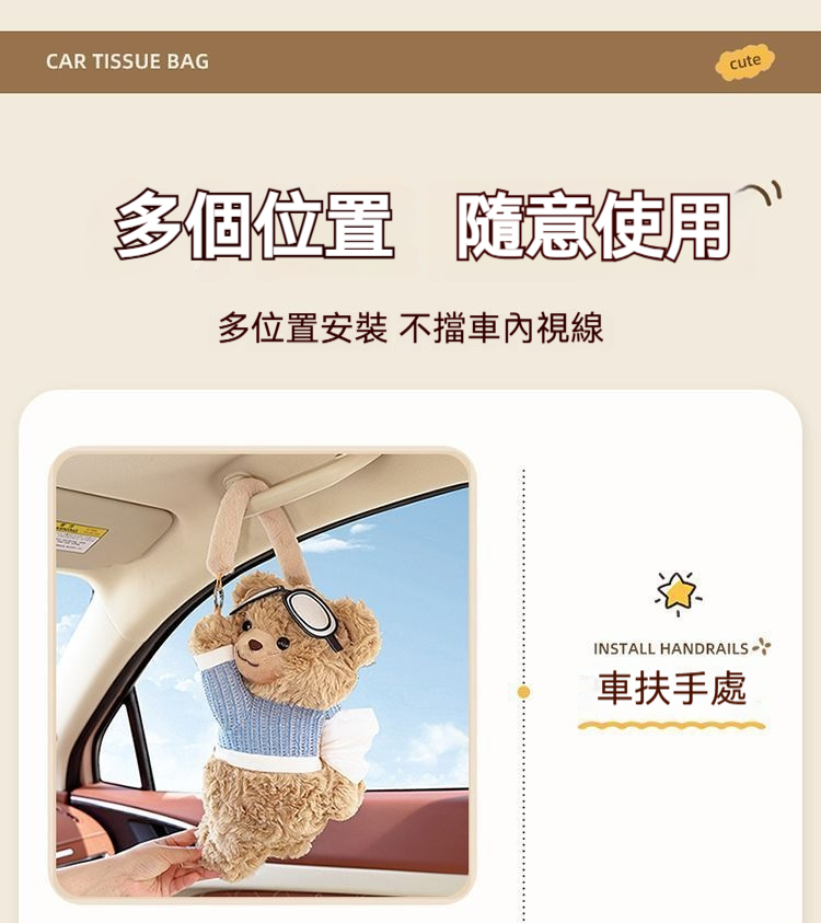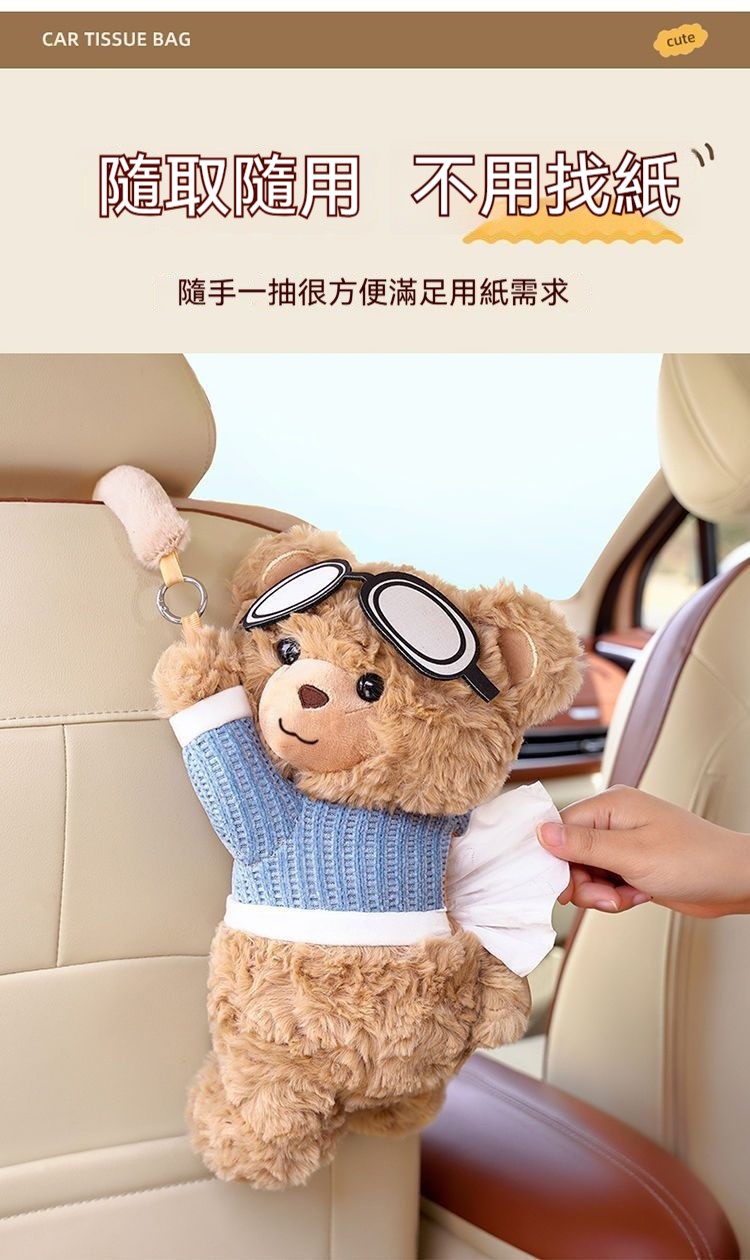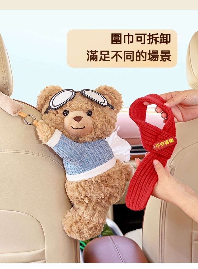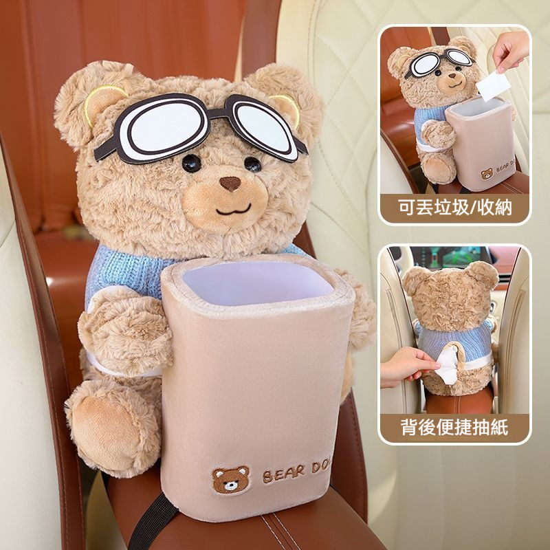 【車內紙巾的好去處】小熊萌趣二合一紙巾盒/垃圾桶・整潔車室必備!